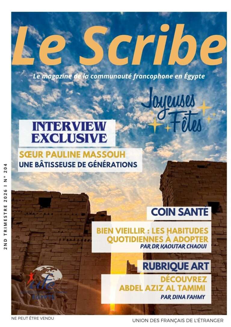 Le Scribe est une revue éditée par votre équipe de l’Union des français de l’étranger en Egypte, et dans laquelle vous trouverez des infos pratiques, des échos du Caire, des articles pour découvrir l’Egypte, des points d’actualité, des recettes de cuisine et consignes de sécurité… bref, une revue pour bien vivre votre expatriation.